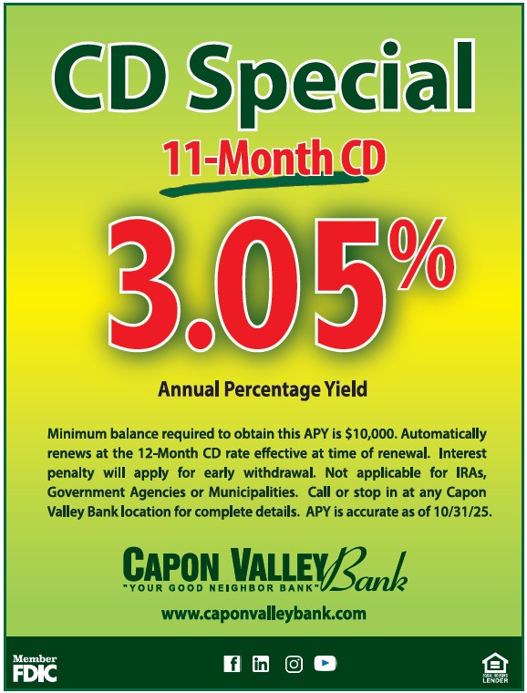 Ready to start earning higher returns on your savings? A Certificate of Deposit from Capon Valley Bank is an excellent choice for those who want to grow their funds securely and efficiently. With a range of terms, competitive rates, and personalized service, we’re here to help you achieve your financial goals.